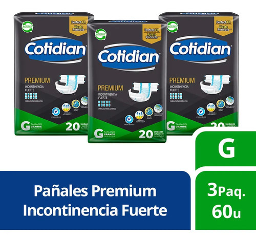 -35%3 Paquetes Pañales De Adulto Cotidian Premium 60 Un Talla G