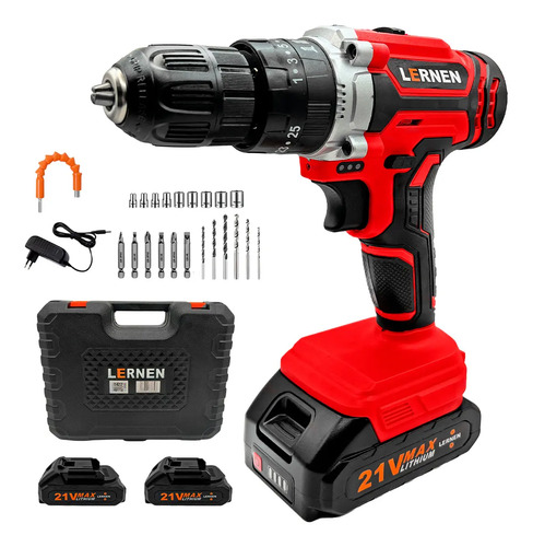 -32%Taladro Percutor Destornillador Inalámbrico 21v y 2 Baterías Color Rojo Frecuencia 50Hz Lernen TIK2BR